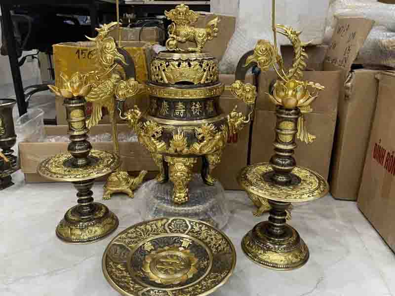 Khi nhắc đến những vật phẩm thờ cúng cao cấp, không thể không nhắc đến Đỉnh Đồng Ngũ Sự Dát Vàng 24K. Đây không chỉ là một bộ đồ thờ, mà còn là một kiệt tác nghệ thuật, biểu tượng cho sự thành kính, sang trọng và mong muốn phát triển bền vững của gia tộc.